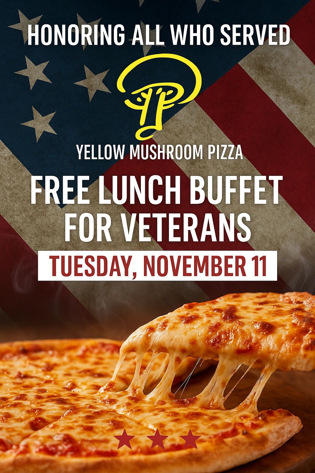 This Veterans Day, all veterans are invited to enjoy a FREE Pizza Lunch Buffet on us. 🍕